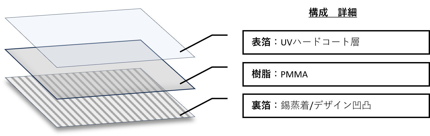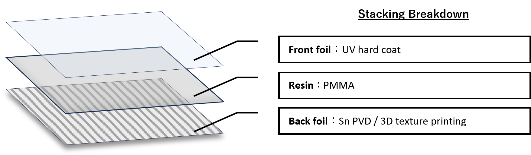 表側と裏側に異なる加飾のインモールド箔を入れることで、成形樹脂の肉厚を通し、奥行きや深みを表現できます。