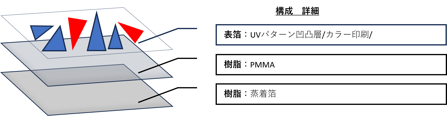 その微細な凹凸部に、位置を合わせてカラー印刷を行った箔を表面に。