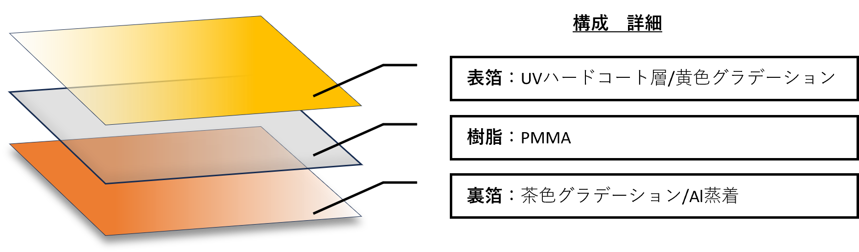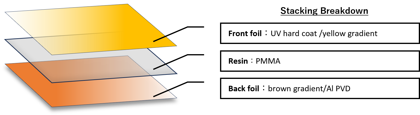 表側と裏側に異なる加飾のインモールド箔を入れることで、成形樹脂の肉厚を通し、奥行きや深みを表現できます。