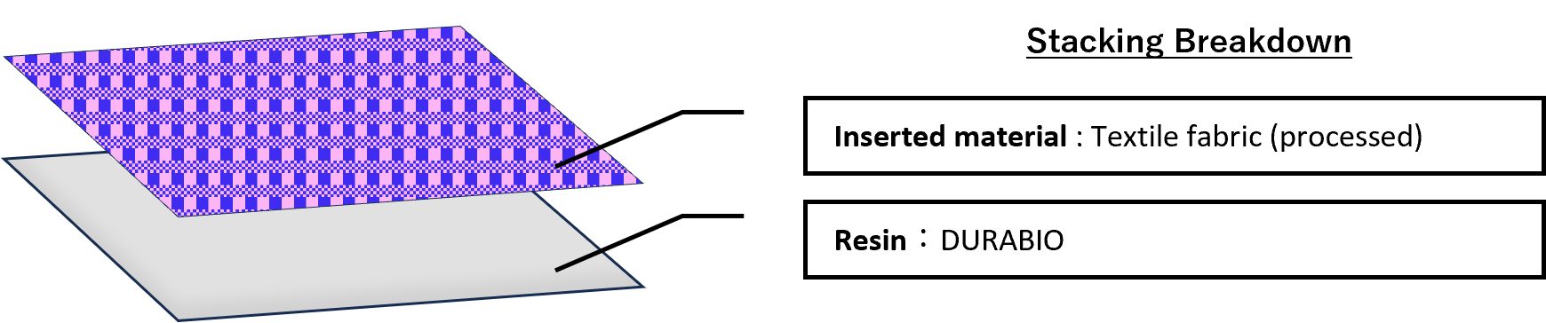 射出成形の熱と圧力により、素材と成形樹脂を一体化する工法です。