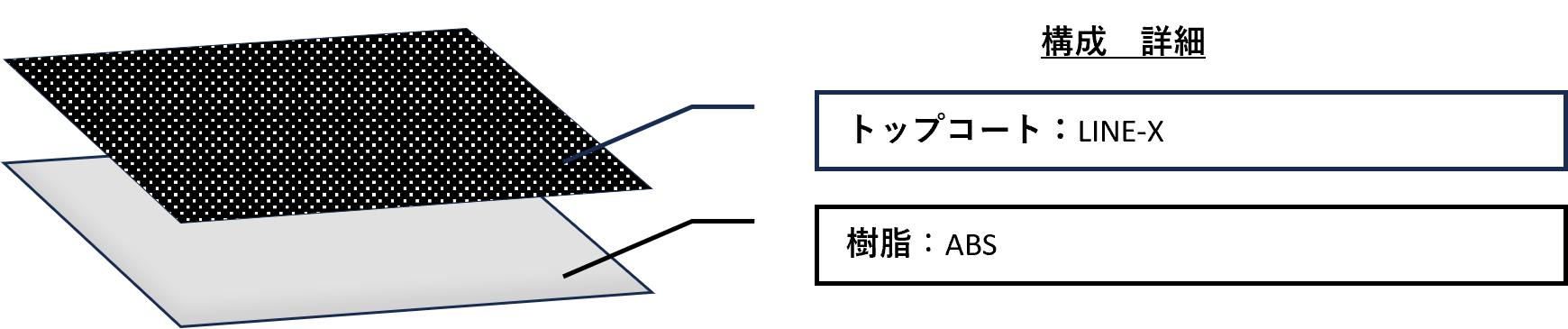 耐摩耗性、傷防止、耐衝撃性などがあり、非常に耐久性の高いLINE-X塗装を施しました。