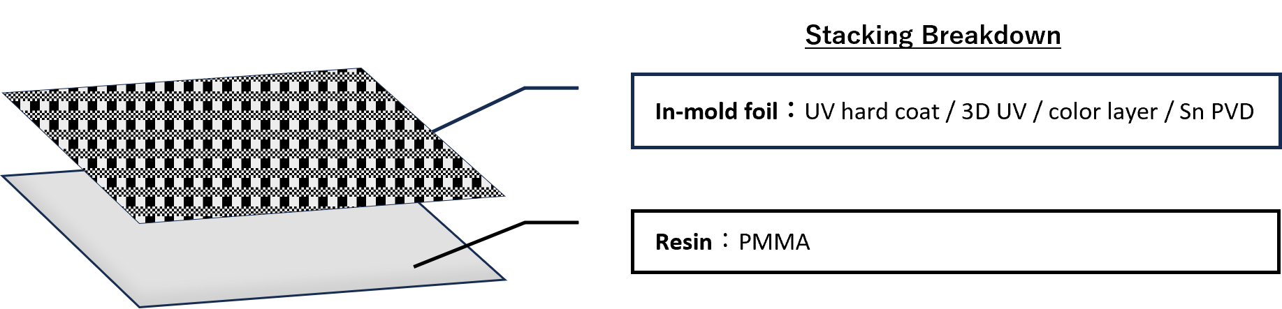 We created a three-dimensional look as if real carbon fibers were woven, using only the front-side In-mold foil.
