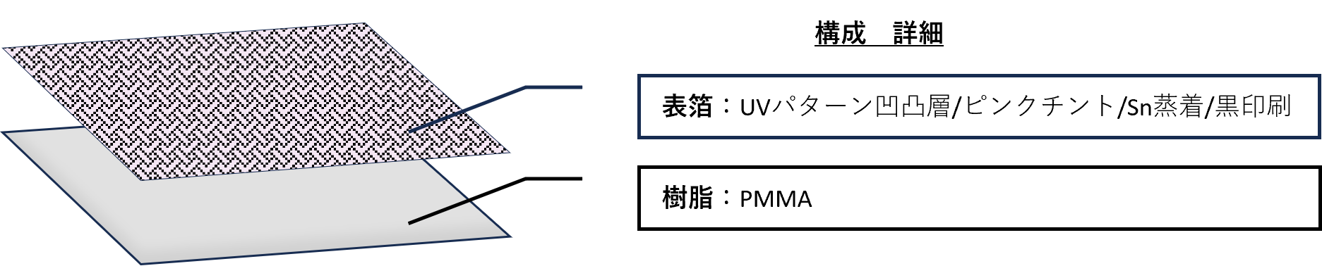 印刷と蒸着を組み合わせることにより、様々な外観のインモールド箔が作製可能です。