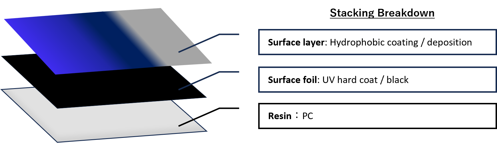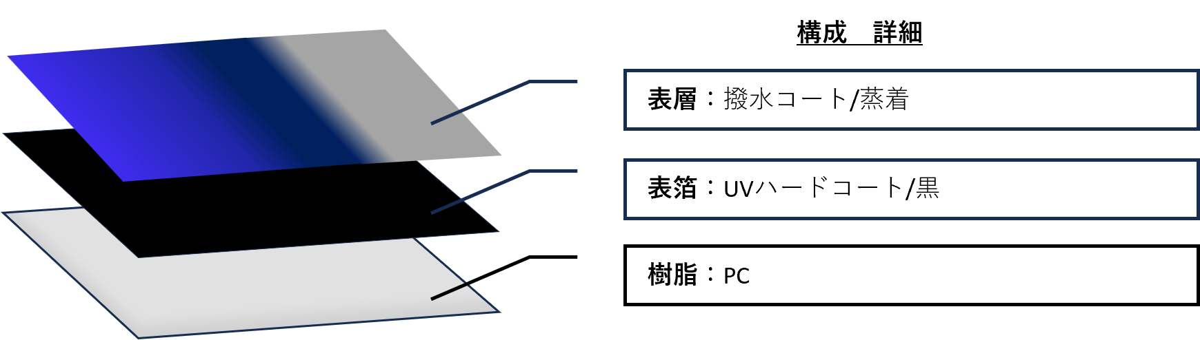 製品の中で膜厚をコントロールし、蒸着でグラデーションを表現しました。